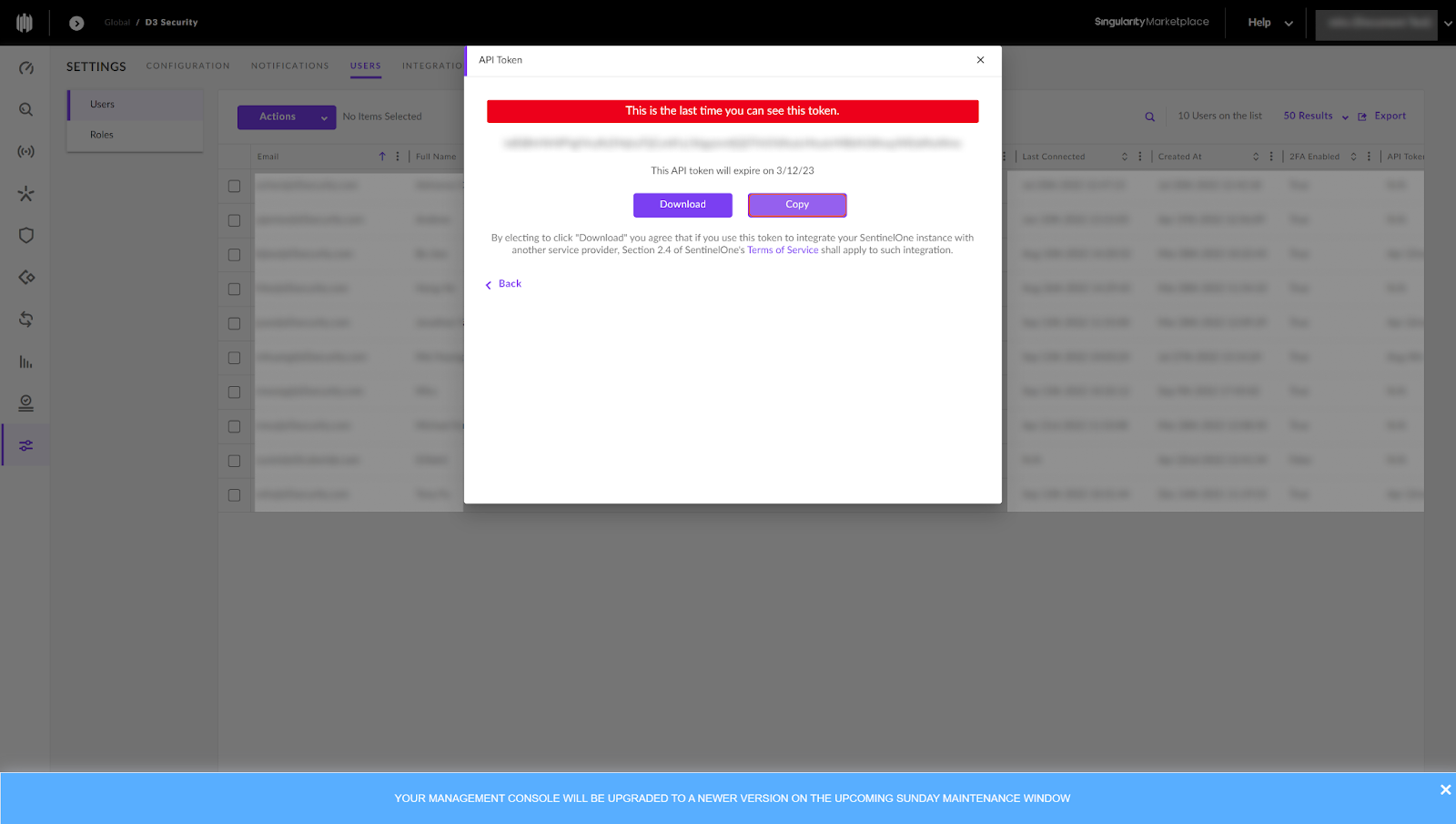 To connect to SentinelOne from D3 SOAR, follow this part to collect the required information below: