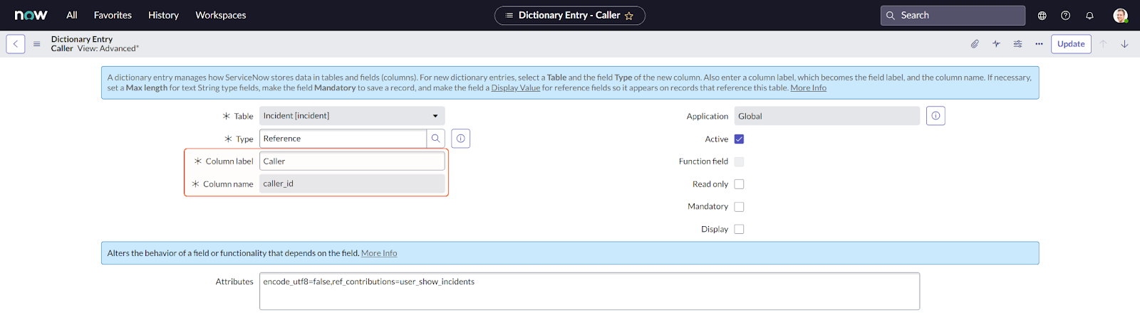 Option 1: View the Field System Names from the ServiceNow platform. Refer to the table above for the appropriate ServiceNow Table Name to search for.