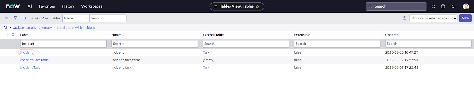Using the Tables search bar, search for the Incident table and press Enter.