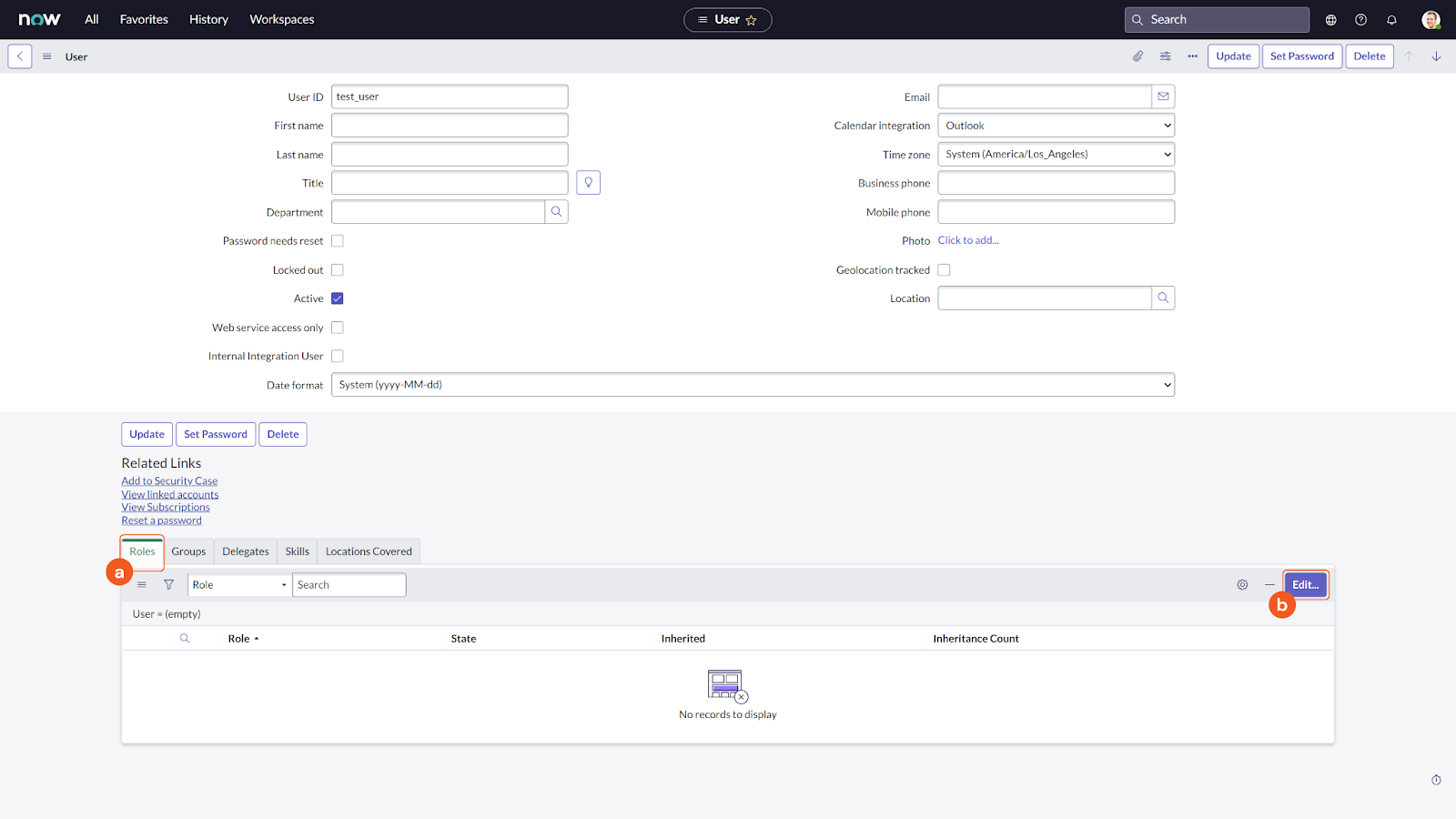 Under the Roles tab, click Edit to grant roles to the user you created.