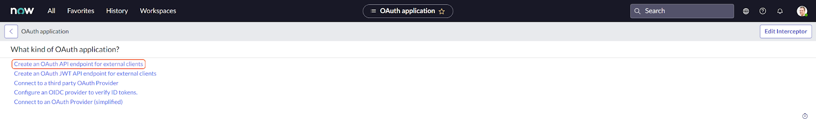 Select Create an OAuth API endpoint for external clients.
