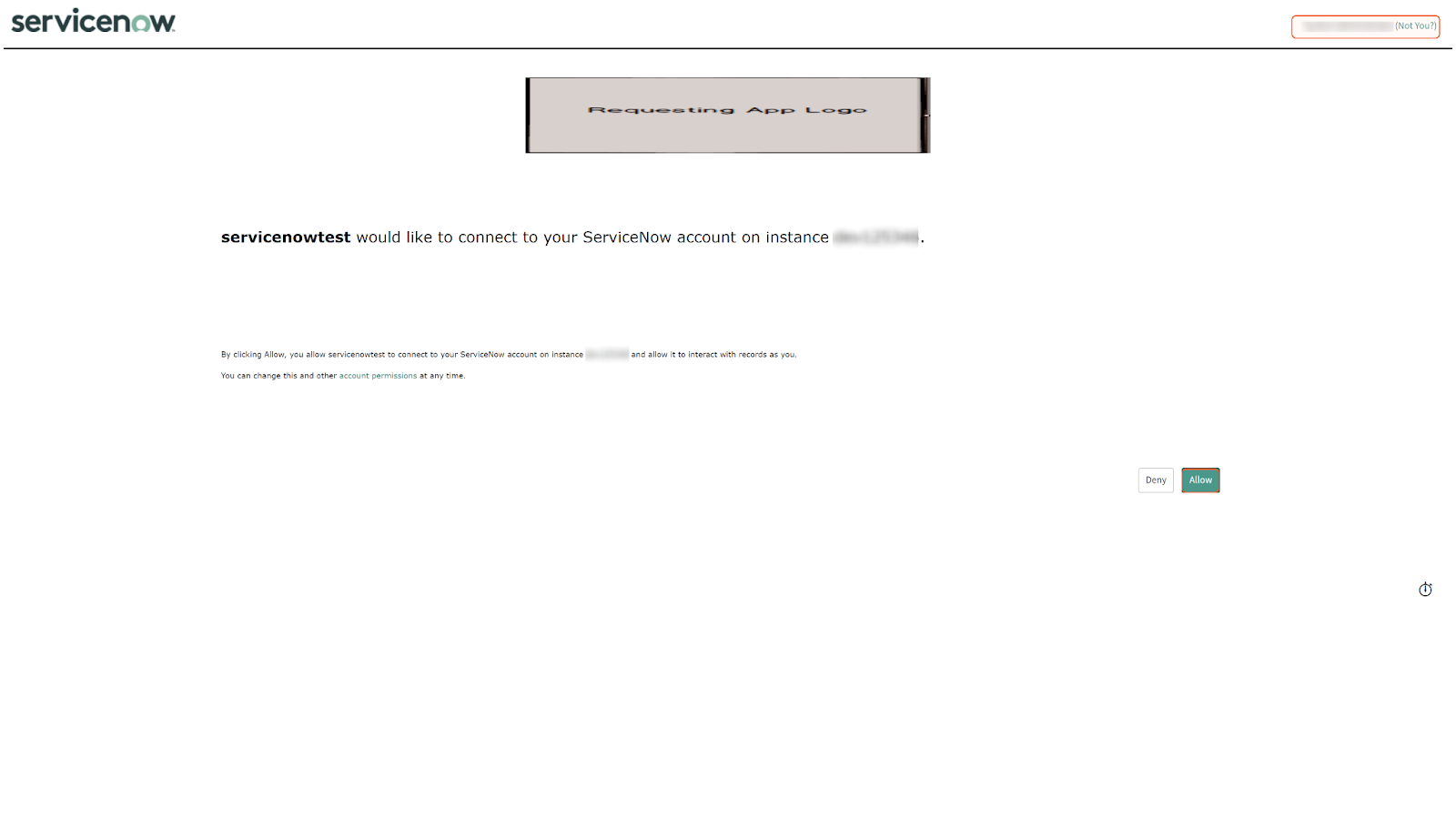 Server URL | The server URL of the ServiceNow instance to connect to. | https://dev12345.service-now.com |