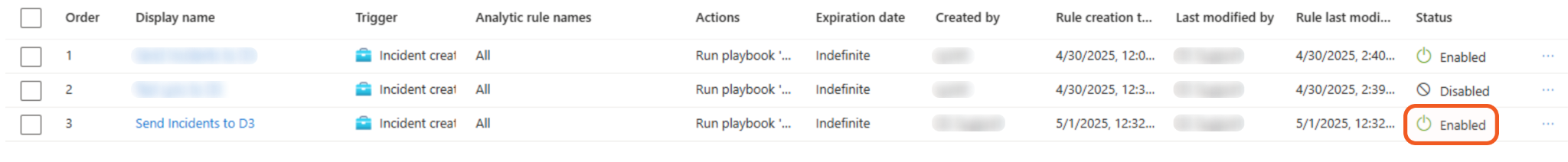 Ensure that the newly created automation rule is enabled.
