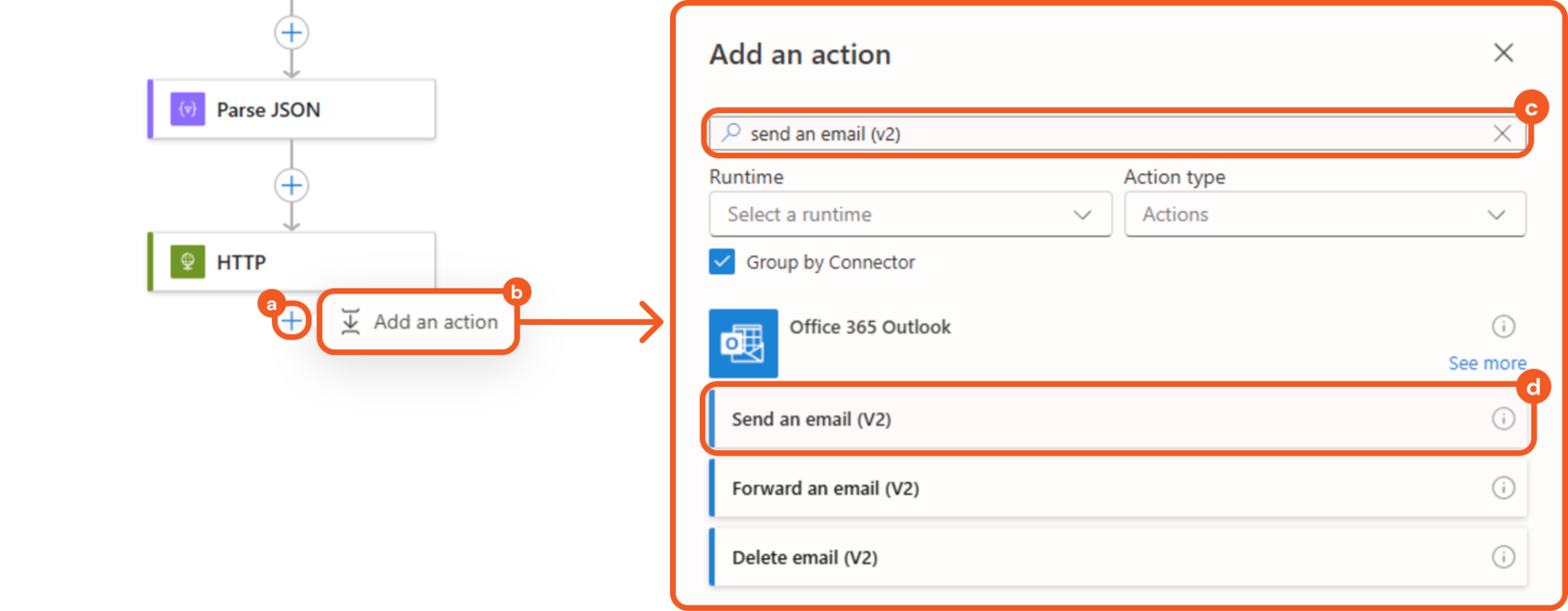 Adding a Send an Email (V2) Action
