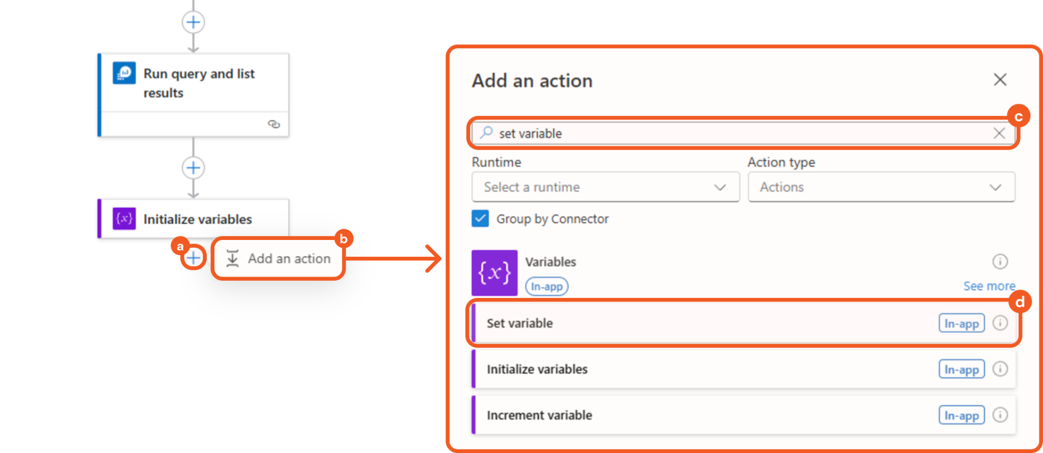 Adding the Initialize Variables Action
