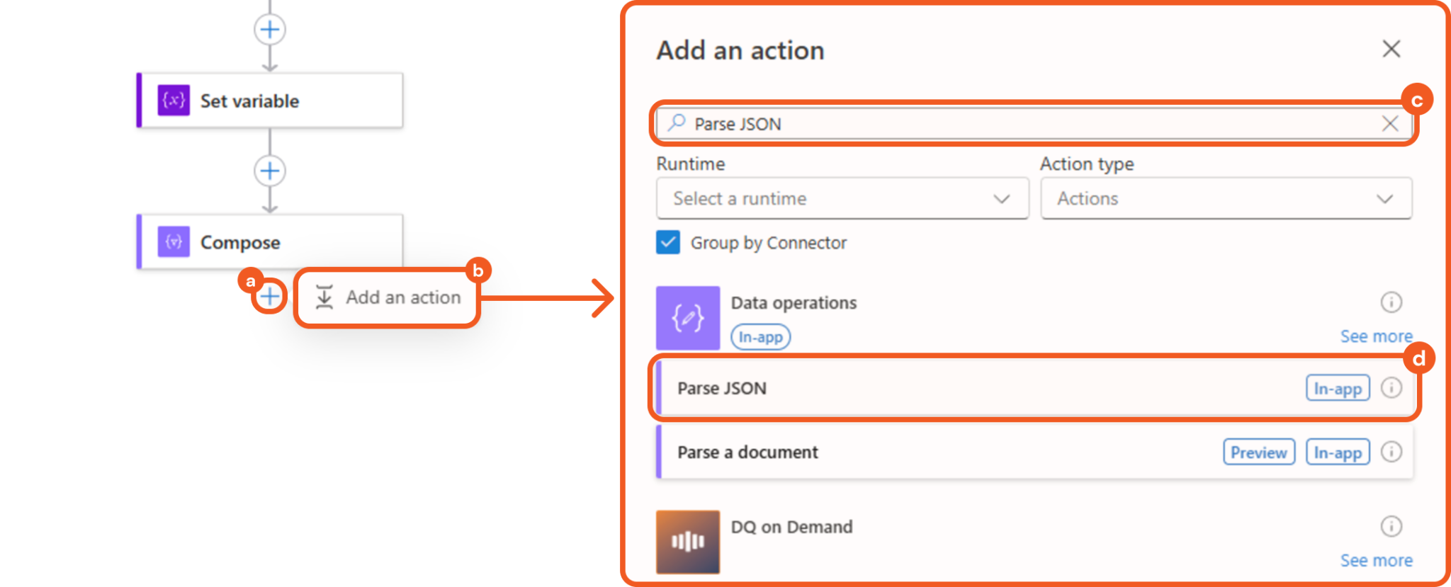 Adding the Parse JSON Action