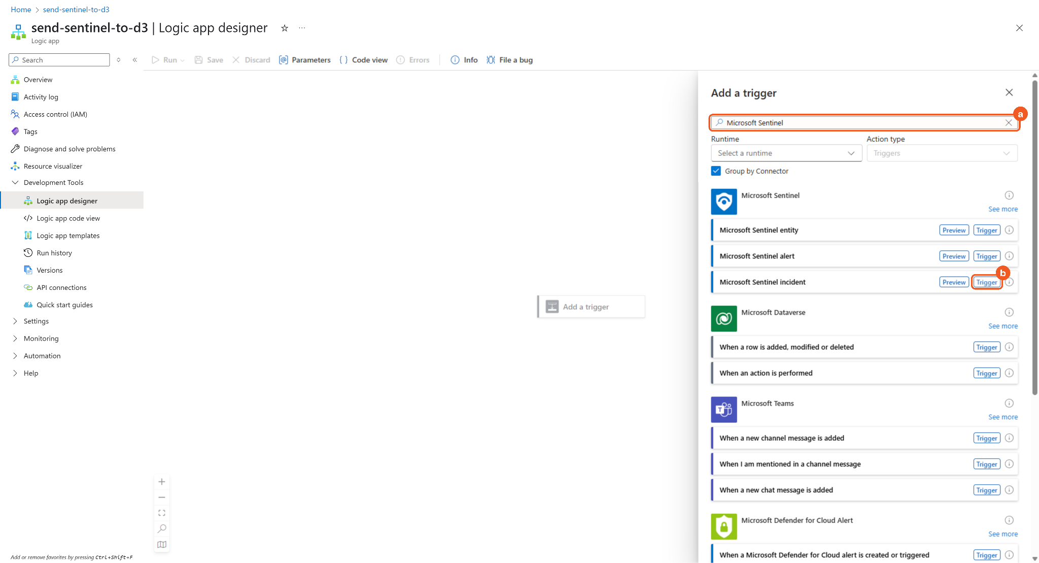 Adding the Microsoft Sentinel Incident Trigger