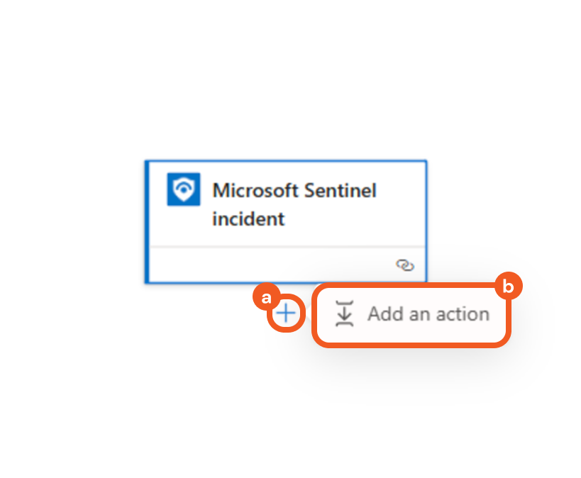 Click the + button below the Microsoft Sentinel Incident trigger, then click the Add an action button.