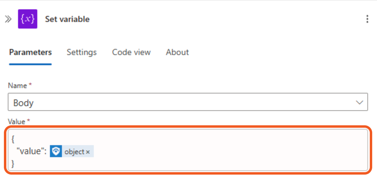 Add a Set variable action below the Initialize variables step.