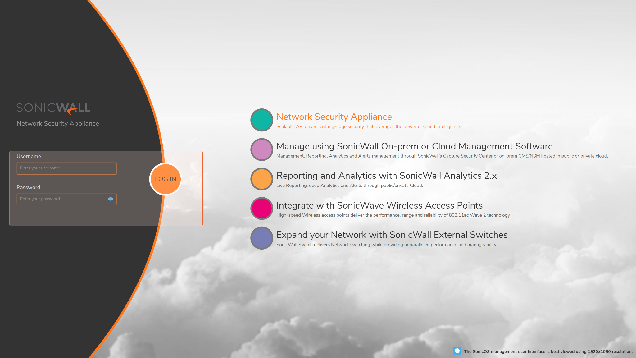 Log in to your SonicWall instance with your account credentials.