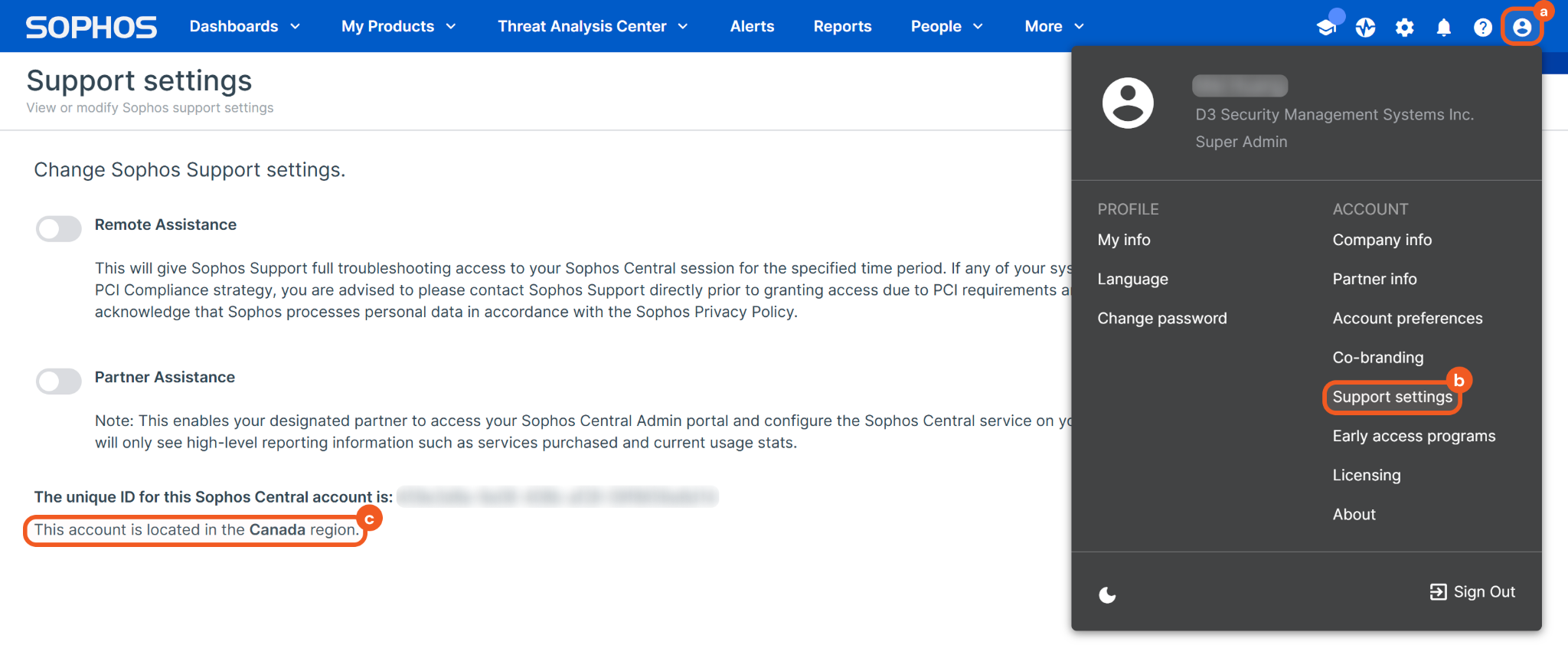 For instance, the Server URL for the Canada account region is https://api-ca01.central.sophos.com.