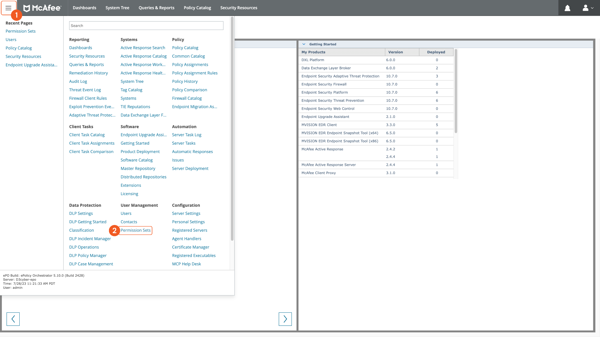 Once logged into your Trellix McAfee ePO environment, navigate to User Management > Permission Sets.