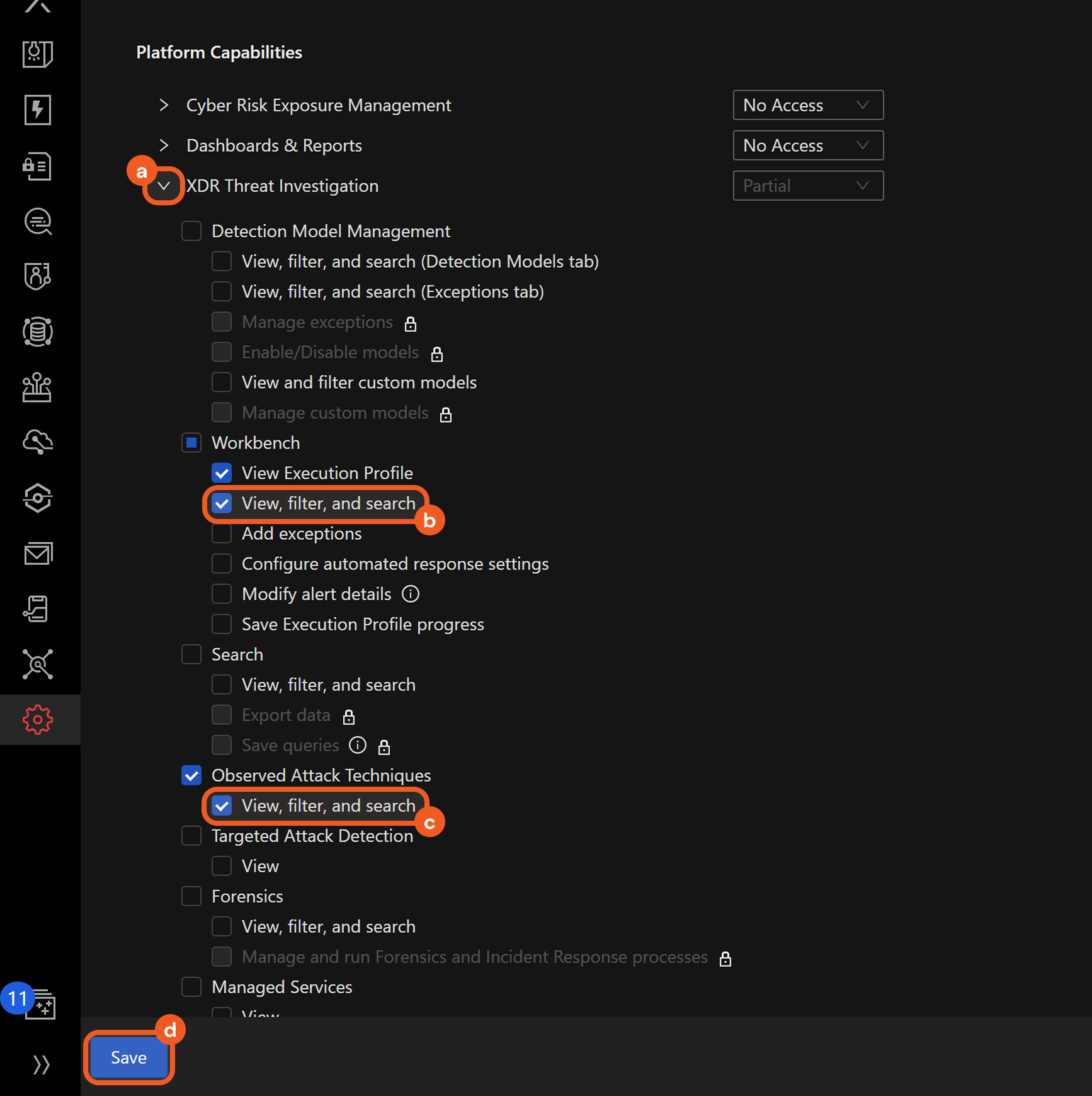 The View Execution Profile option is automatically checked upon selecting the View, filter, and search option.Select the View, filter, and search option under the Observed Attack Techniques section.