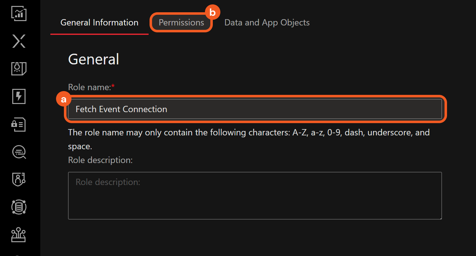 Configure the permission scopes. For example, a role with the minimum required scopes to use the Fetch Event command can be set as follows: