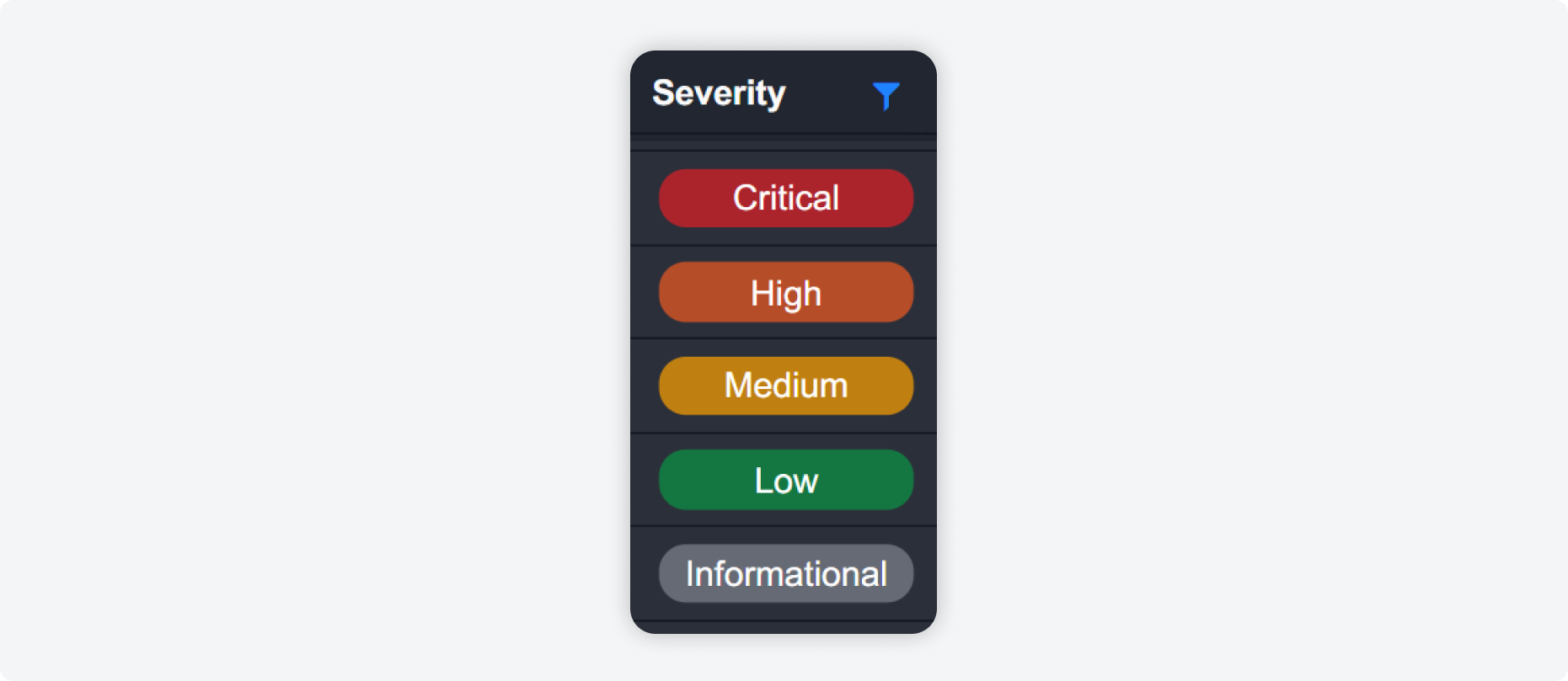 There are now two new severity levels for incidents: Informational and Critical. These levels are in addition to the existing levels of Low, Medium, and High, with Informational being the least severe and Critical being the most severe. This allows for a more detailed and accurate categorization of incidents and can help improve incident response and management by allowing teams to prioritize and filter incidents based on more precise severity levels.