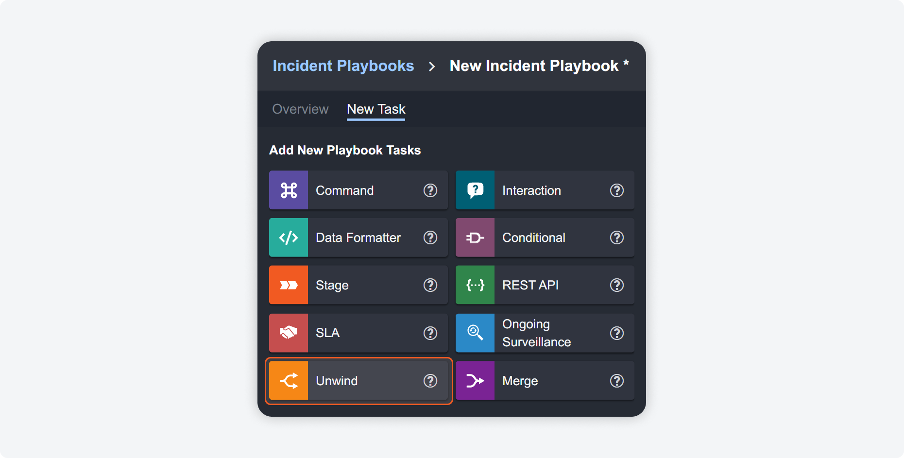 The new Unwind playbook task allows you to take an array of JSON objects and separate them into individual objects. Each JSON object can then be enriched individually with a different workflow. The unwind task will make it more accessible to manage and process large data sets from the playbook editor menu.