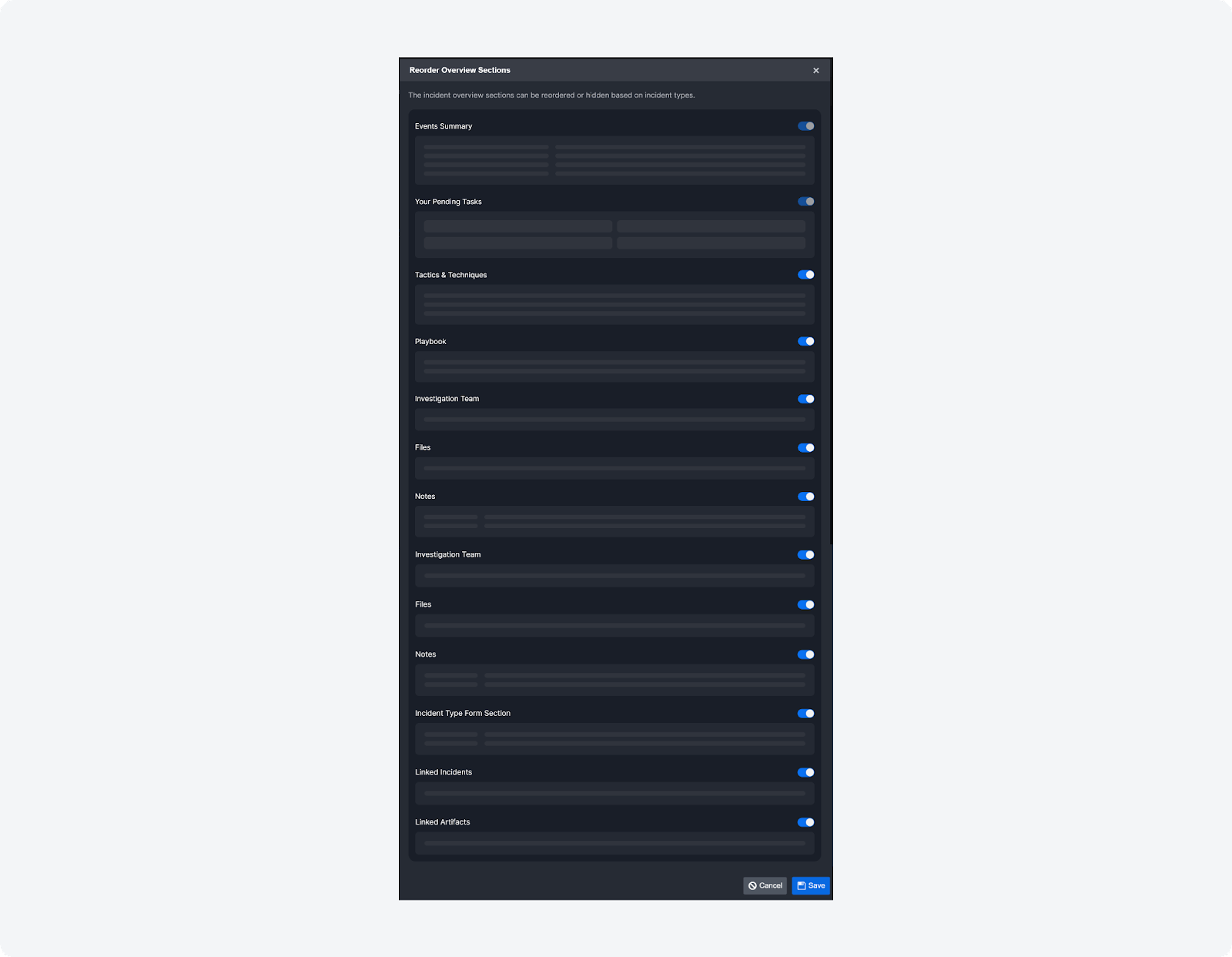 Due to the changes in the quick access panel UI, the Incident Form Editor has also been modified when editing the incident overview.