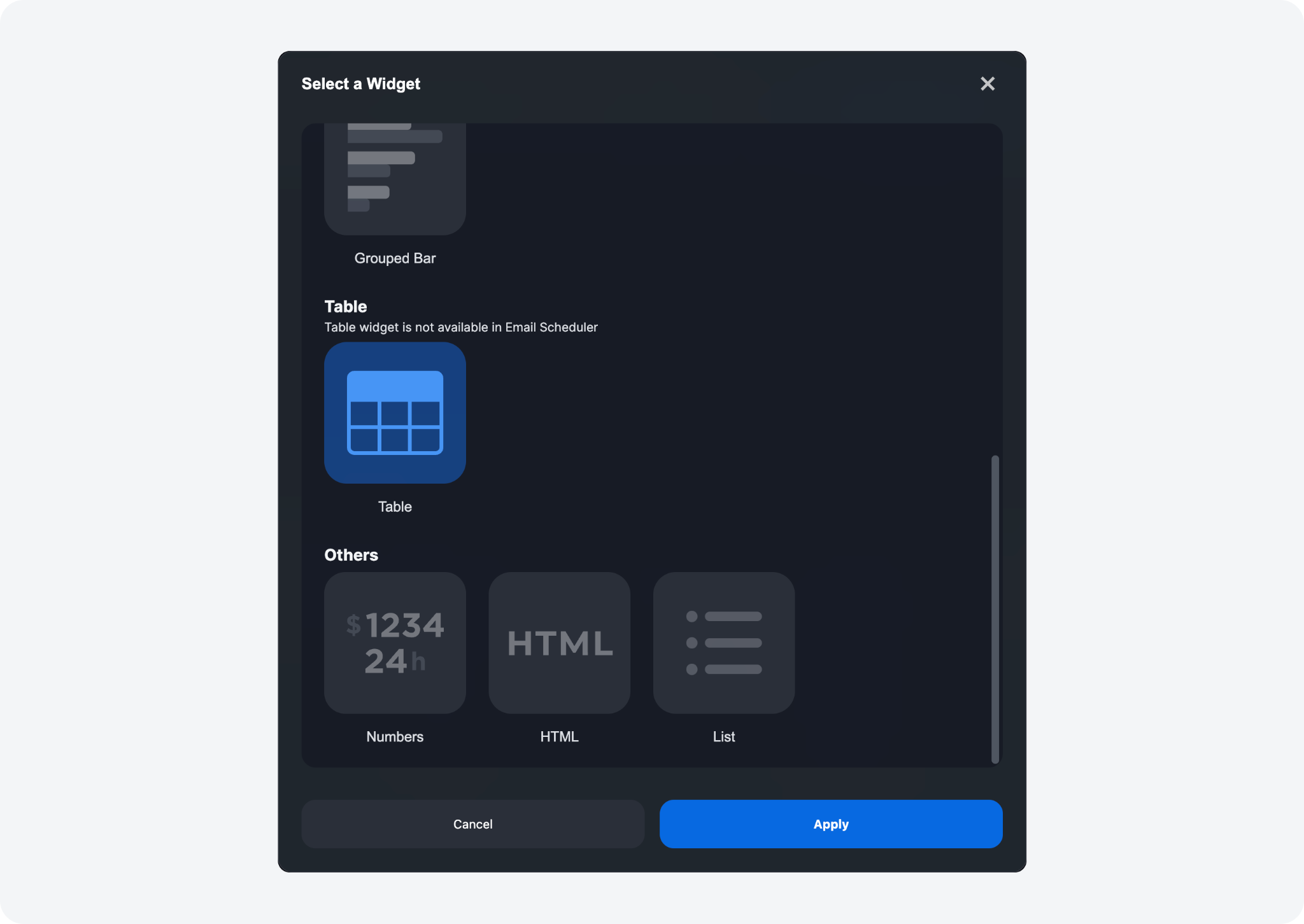 With our latest update, the Table Widget has been introduced to enrich your reporting dashboard capabilities. This widget allows for the data to be displayed in a structured table format, offering you the flexibility to customize your view by adding or removing columns according to the fields queried. Due to access control limitations, the Table Widget is not compatible with the email scheduler feature for sharing purposes.