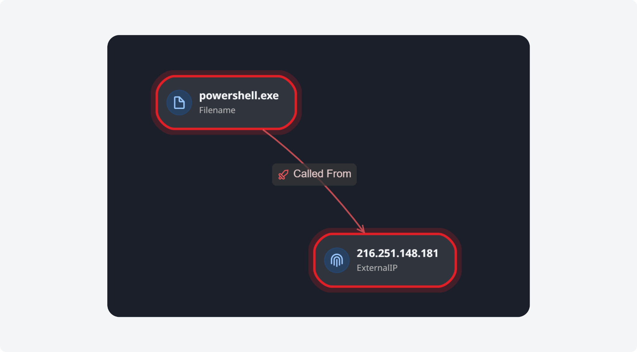 The IOA/IOC Link Analysis tab under the Investigation Dashboard visualizes the relationships between indicators of attack (IOAs) and indicators of compromise (IOCs) from events and incidents. You can view analyses from the past 7 or 30 days to gather historical attack patterns. Each node represents an artifact entity, coloured red (IOA), yellow (IOC), or both. Arrows show the direction of the labelled relationship. Clicking on a node reveals more information, and the "Add Investigation Details" command lets users define artifact relationships for automated link analysis.