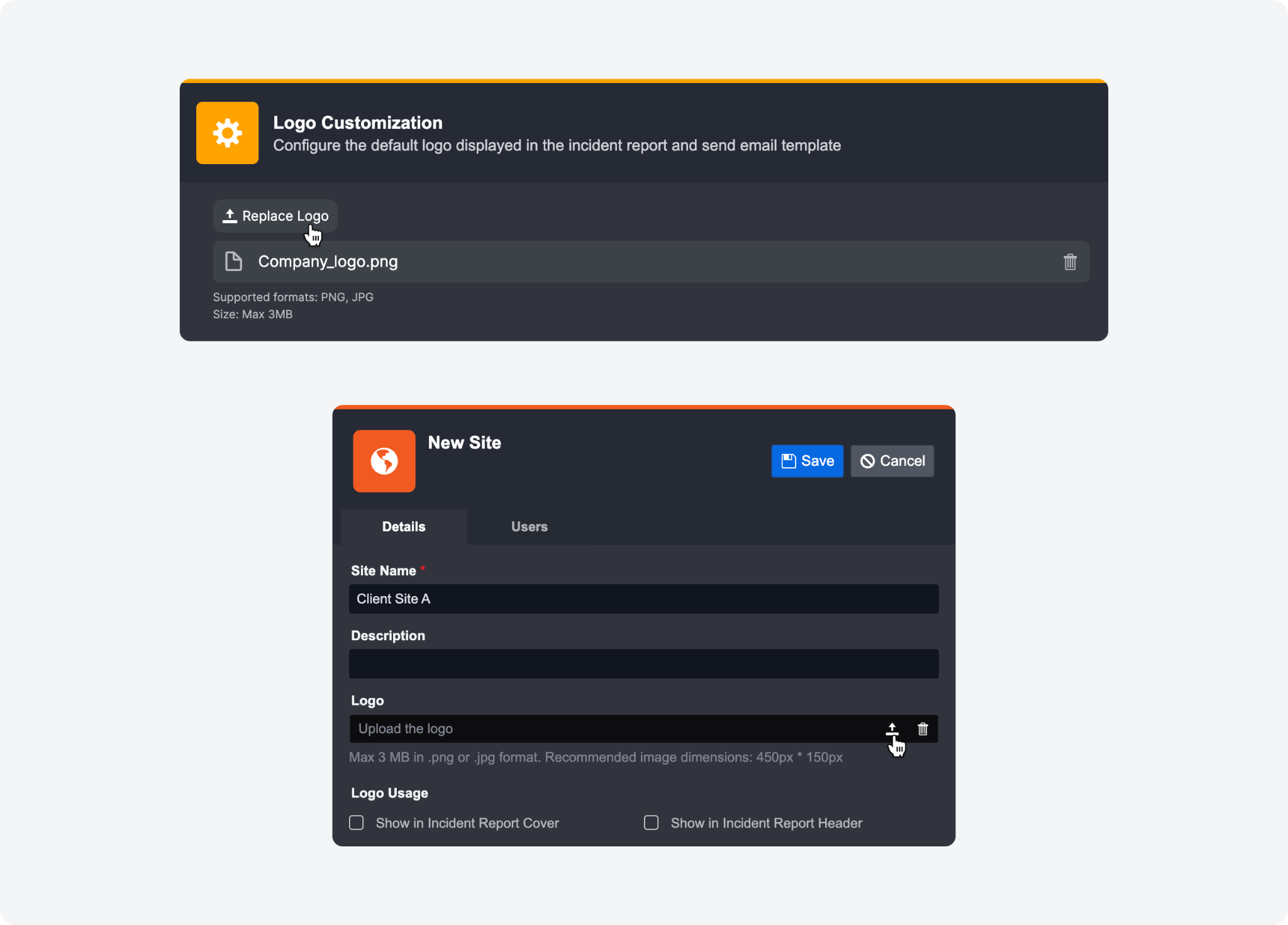 Site-Specific Logos for MSSPs: Tailoring to the unique needs of Managed Service Security Providers (MSSPs), our update enables the display of distinct logos for each client managed by MSSPs. This customization extends across all client-specific interfaces and incident report templates, maintaining a cohesive brand image for each client's site. This can be configured at Configuration > Organization Management > Sites.