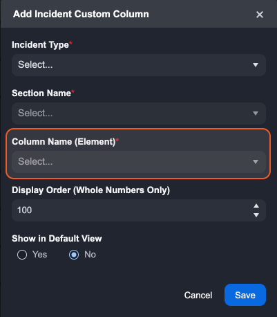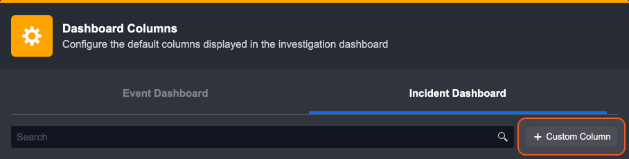 Navigate to the Incident Dashboard tab and click on the + Custom Column button.