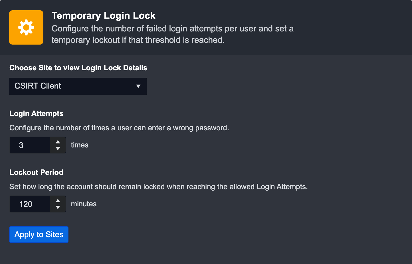 After configuring your setting, you can apply these settings to your Site by clicking on the Save button at top right, and/or other Sites (if you're an MSSP).