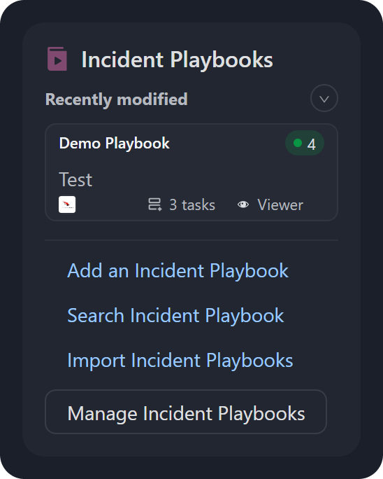 Browse Event/Incident Playbooks: Redirects to the respective Playbooks module.