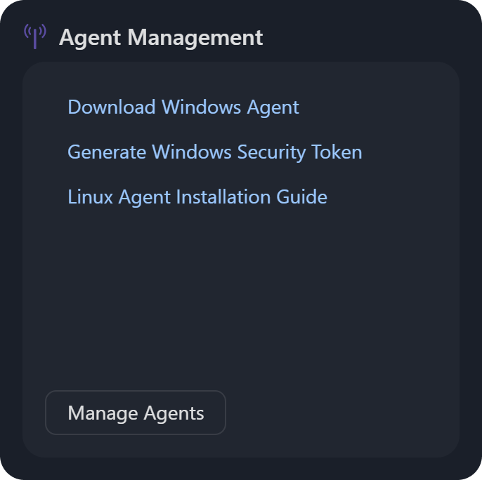 Agent Management: The Download Windows Agent link initiates the download of the