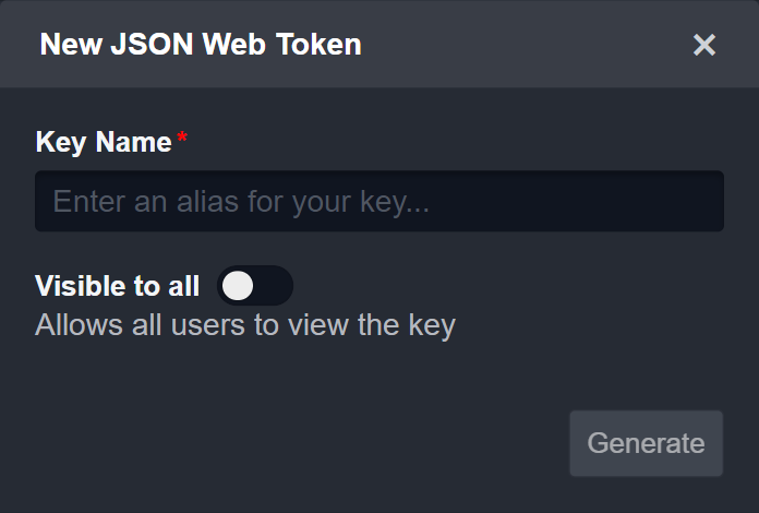 If you are generating a new key, enter an alias for your key. You have the option to allow all users to view the key. Click Generate.