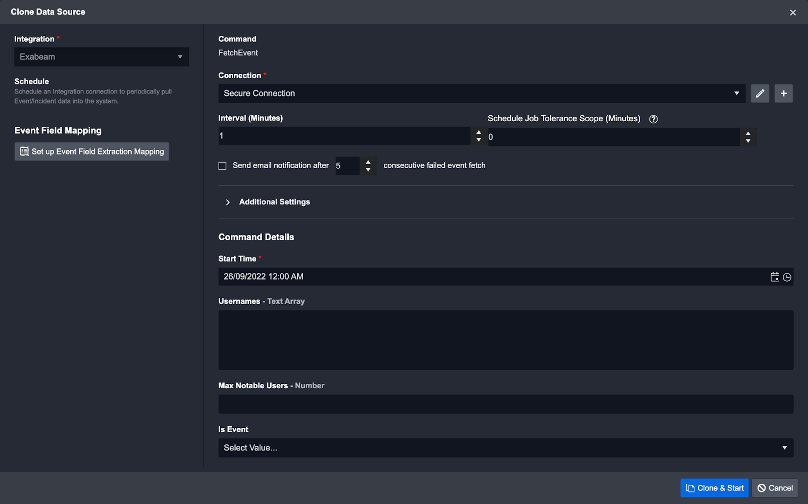 Schedule: Schedule a Fetch Event/Incident Command to ingest data