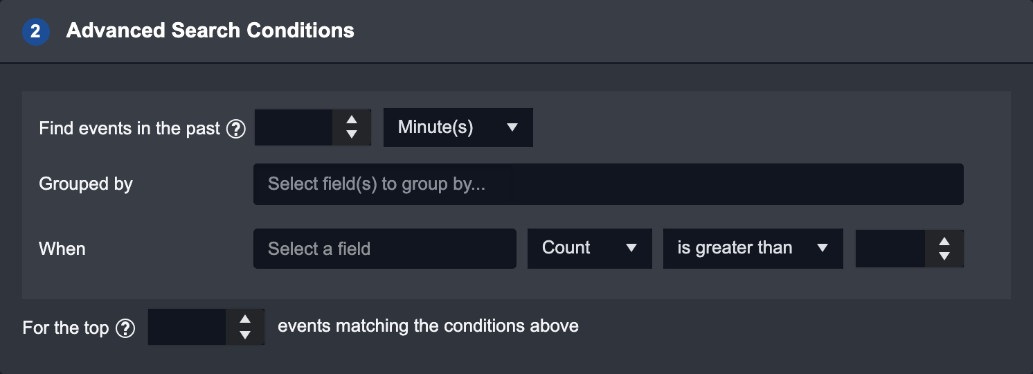 2 | Grouped by | Put Event(s) into groups by specifying the field(s) you want to group them by. |