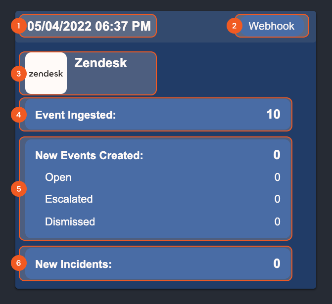 Event intake summary cards group the event ingestion into batches and includes the statistics of Event Ingested, New Events Created, and New Incidents.