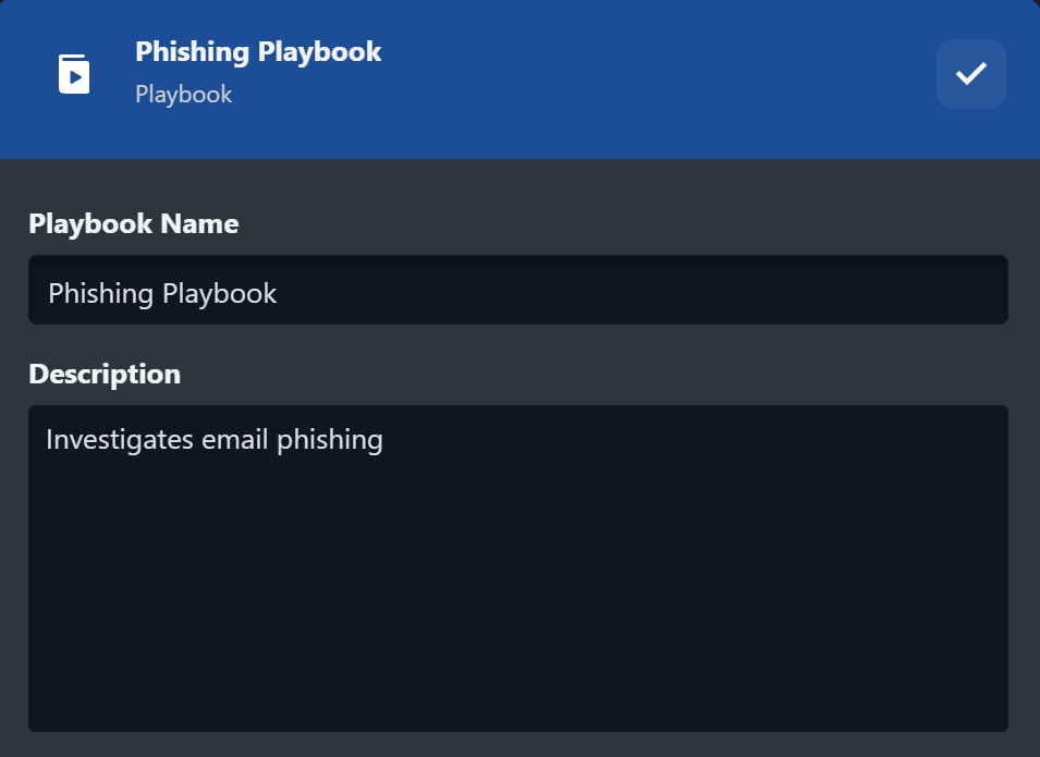 Playbook Name: This Playbook's name; it can only be changed in edit mode.