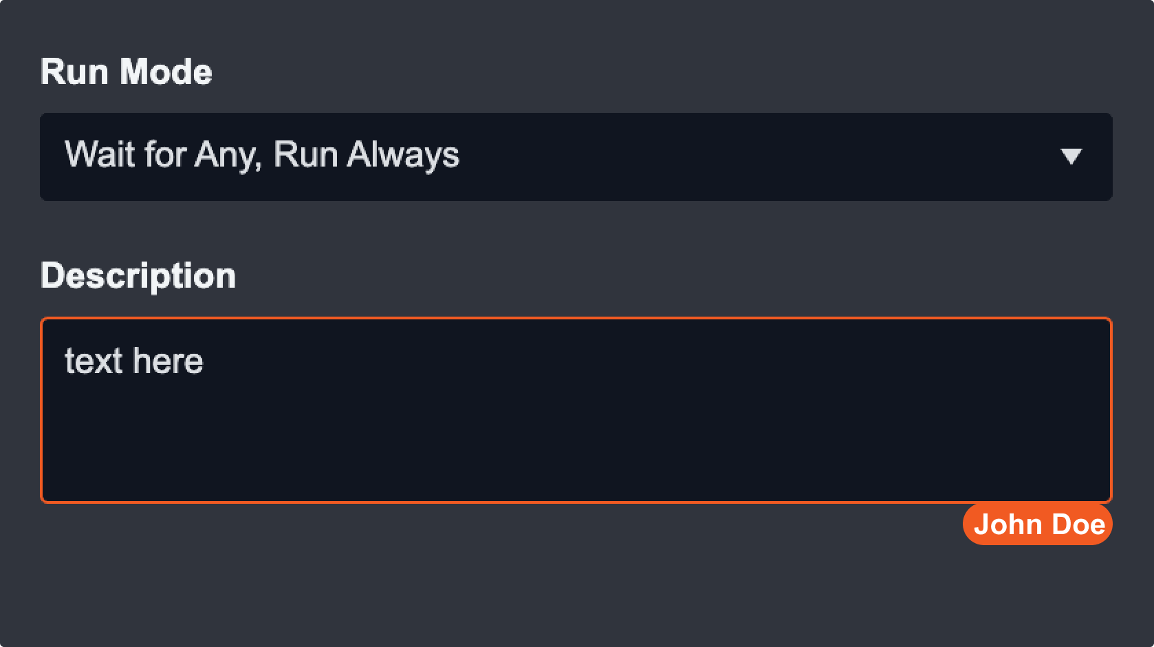 To view a specific field that a user is editing, click on the task to open up the task configuration panel. The field being edited will be outlined in the editor's colour. When you hover over the field, you will see the editor's full name at the bottom right corner. However, concurrent users at field level can only be seen when the playbook is in draft mode.