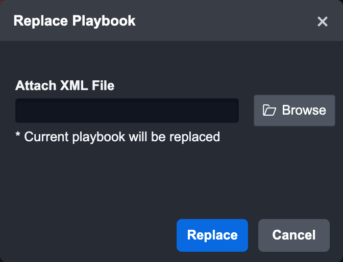 Replace PlaybookWith this feature, you can replace your current Playbook with an exported one. Only a playbook in draft mode can be replaced.