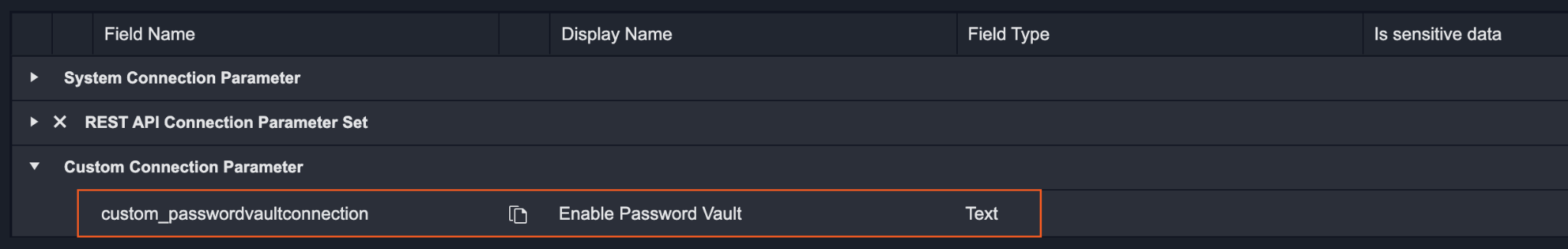 The REST API Connection Parameter Set automatically fills the two parameters. If the fields Proxy Security Token and Proxy Allowed IPs are required, add a parameter named proxy.
