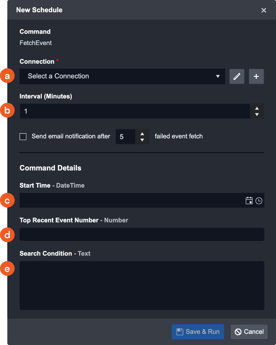The Fetch ingestion method allows the user to Pull in external events at predefined times intervals. The time and intervals are configurable and user-defined. Configuring a Fetch method is similar to configuring a Custom Command. The key difference are the following: