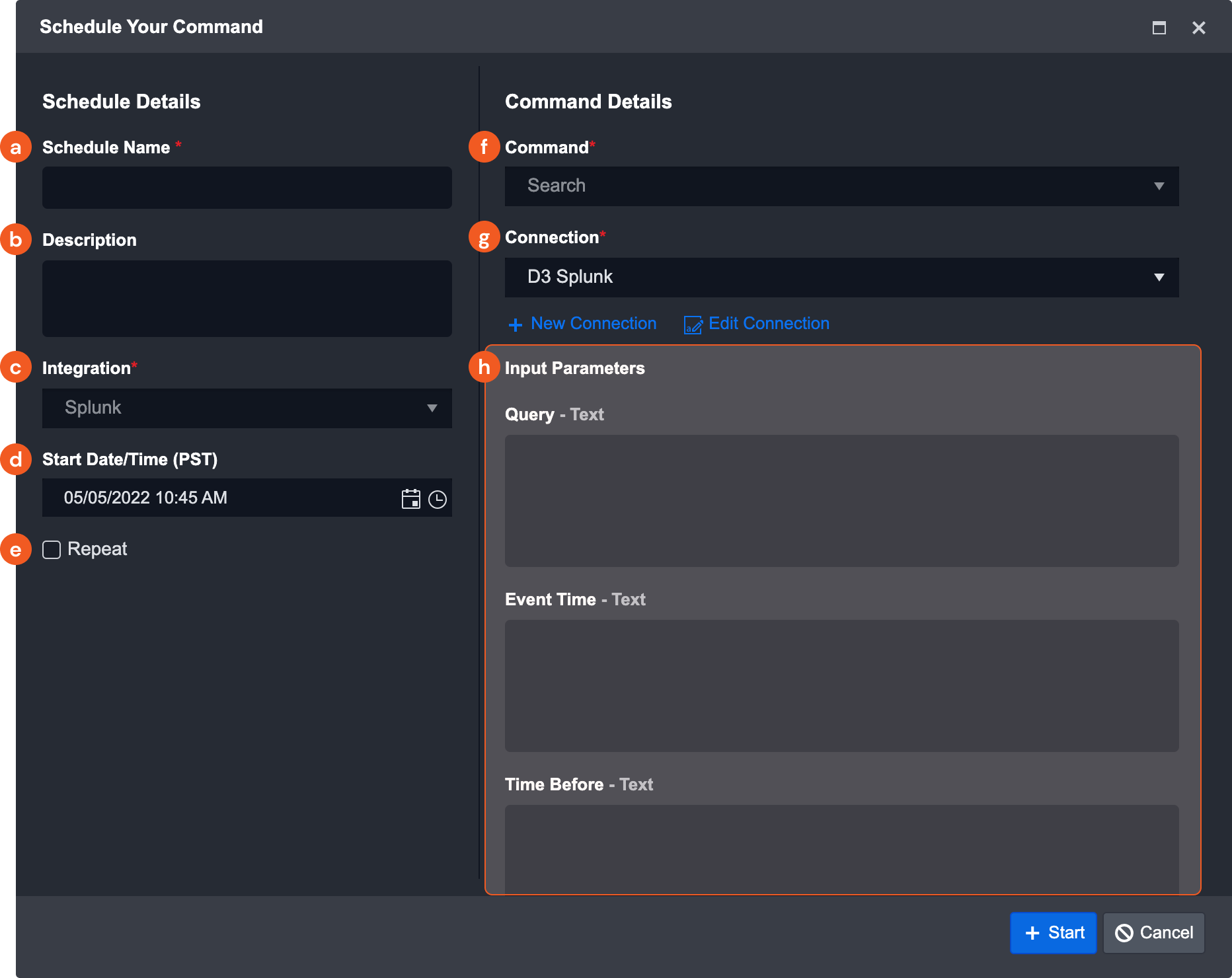 A Connection is the relationship between the D3 SOAR system and a third-party application. In this section, you can select and configure the types of Connection Parameters you would like to save. You can configure what parameters are required for an Integration Connection, and predefine parameter sets to speed up the creation of parameters.
