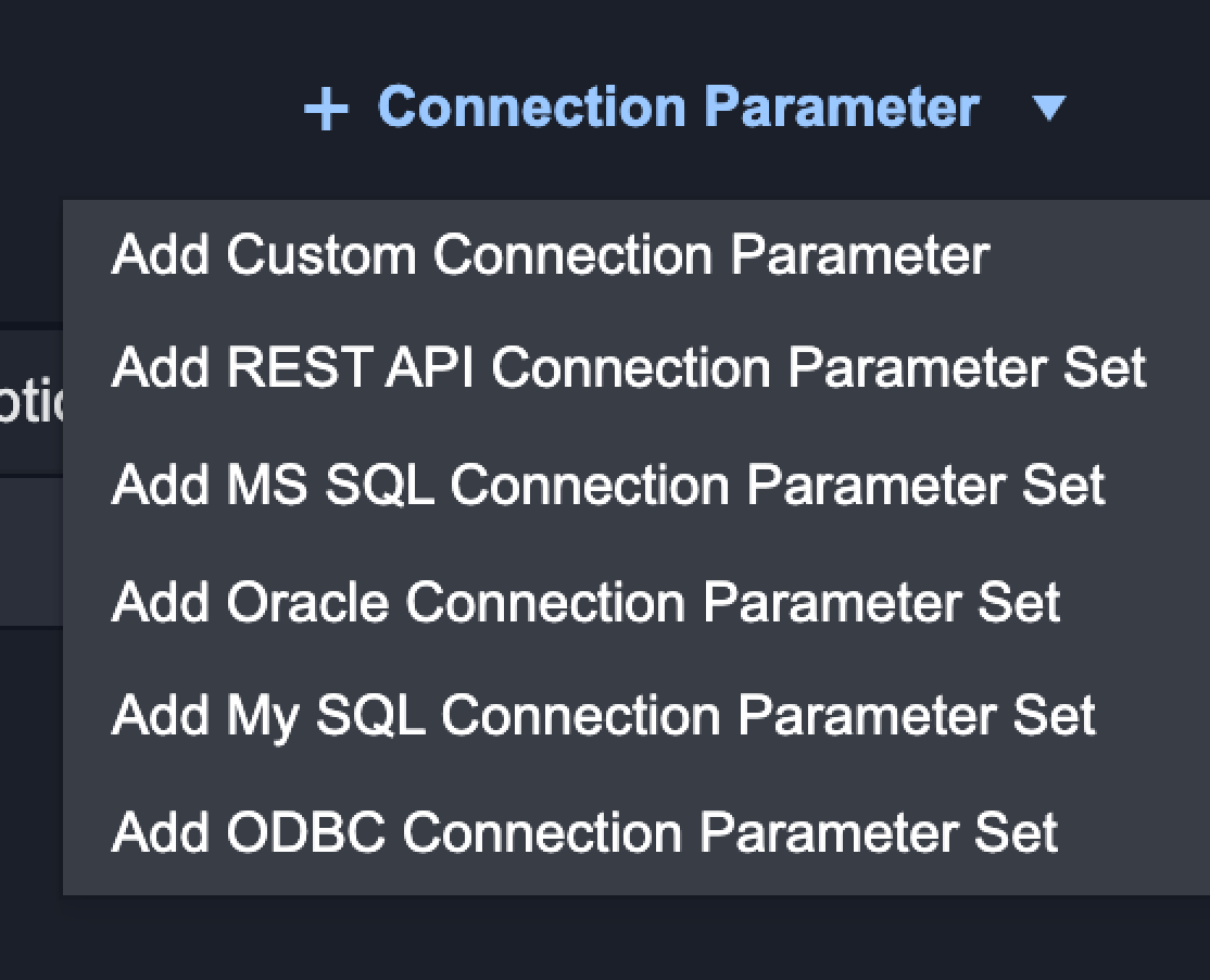 Click on the + New Connection Parameter and select the REST API Connection Parameter Set.