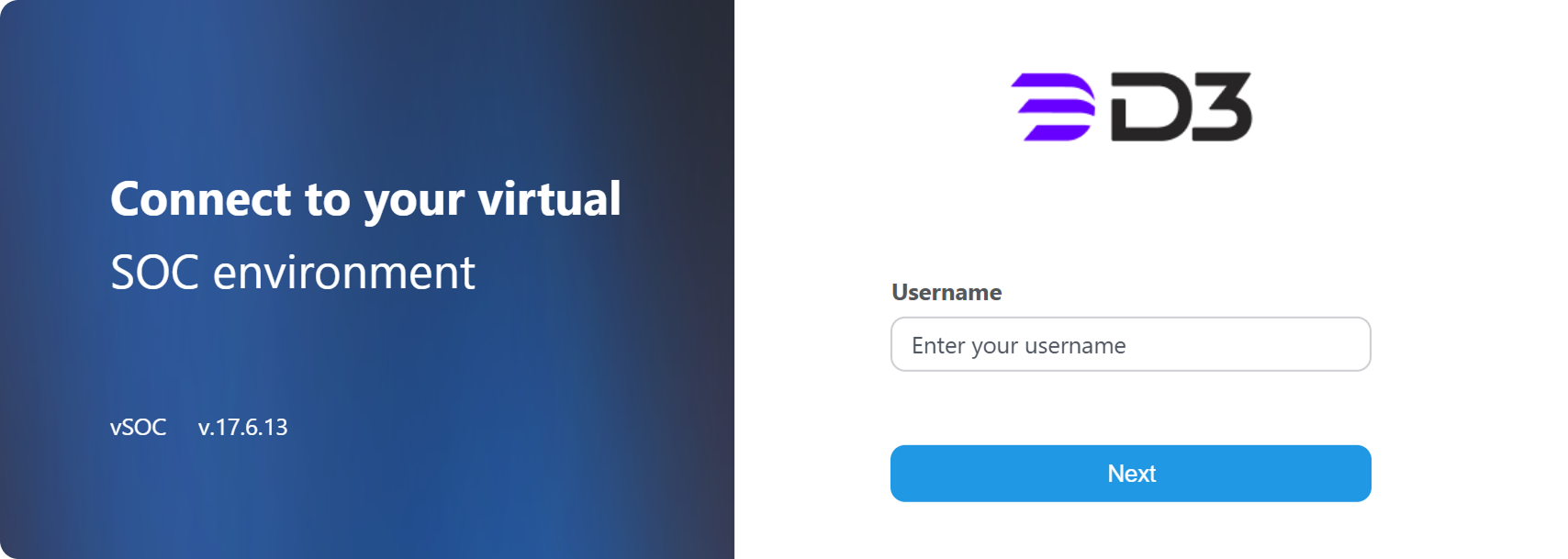 1. Enter the D3 username in the D3 vSOC login page for the user assigned the Keycloak authentication method in step 23b.