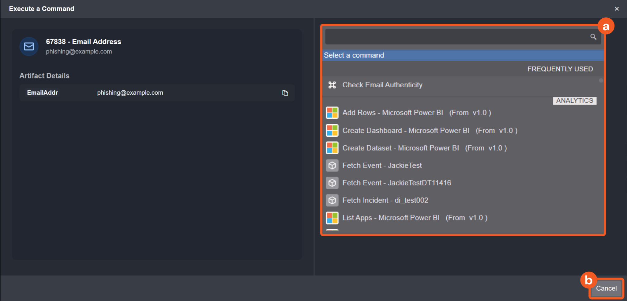 Users can directly execute commands on linked artifacts using the Execute Command button by following the steps below:
