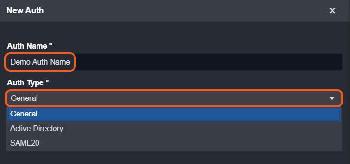 Enter a unique name for the login method in the Auth Name input field.