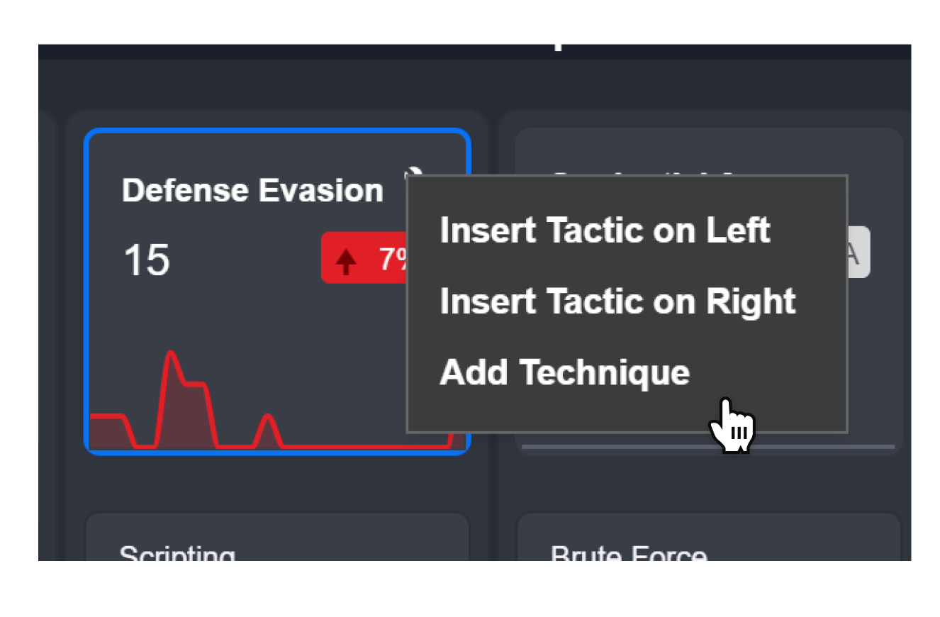 The visualization presented in the Tactics row provides you with a high-level health check of the organization. This visualization helps you quickly identify the number of threats and velocity of change for each underlying Technique over a specific period. You can create custom Tactics, Techniques, and search conditions for more refined categorization, covered in later parts of this document.