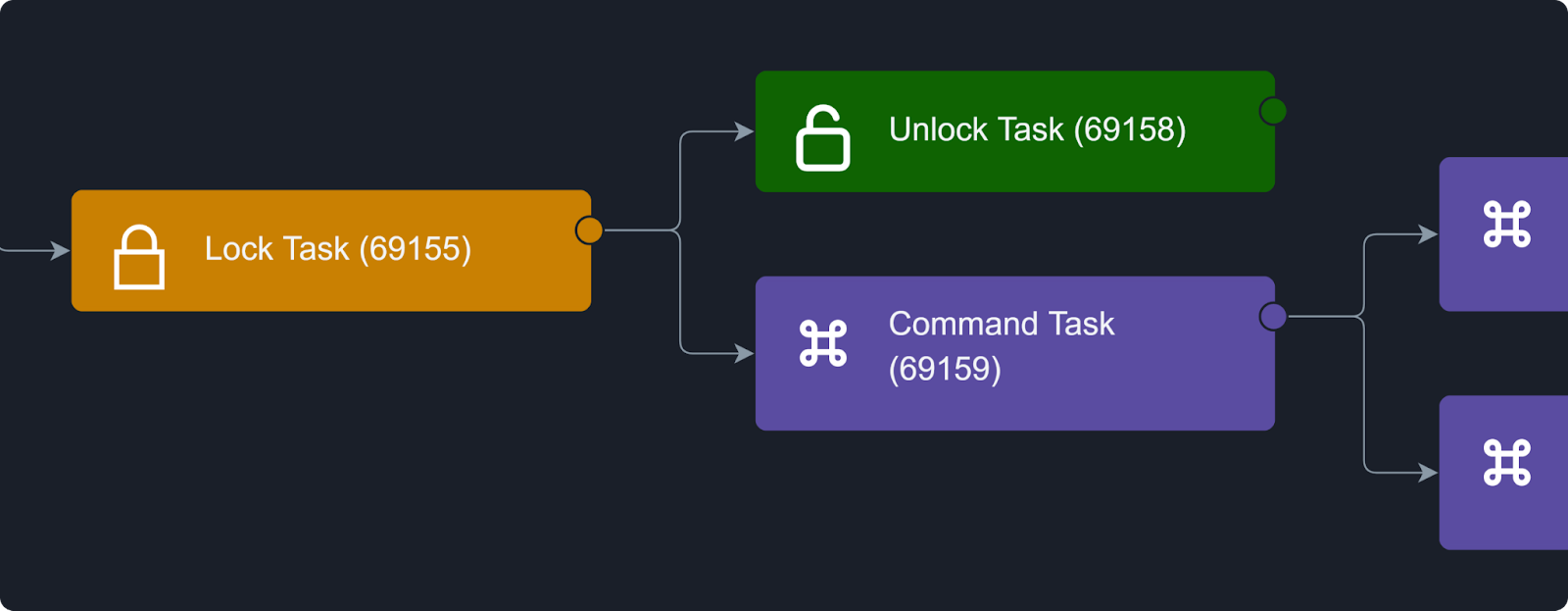 Similar to the scenario in the Event Playbook Troubleshooting section, suppose again that we have two Lock Tasks that share a mutex lock with one downstream of the other.