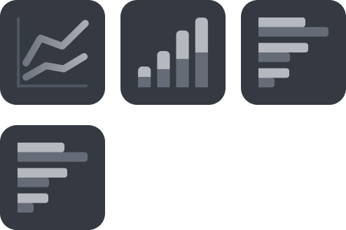 ![]() Grouped Bar | Uses horizontal bars to represent data, with each bar representing a different category of data. Often used to compare different categories of data side by side. | |