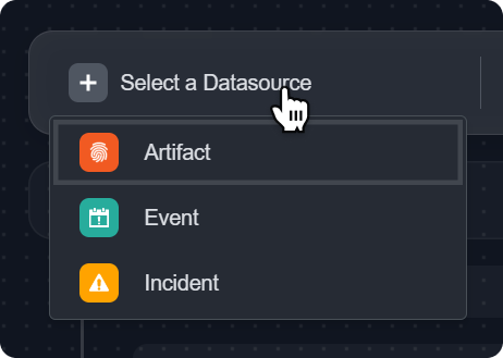 Choose a data source for the widget from the available options (Artifact, Event, or Incident).