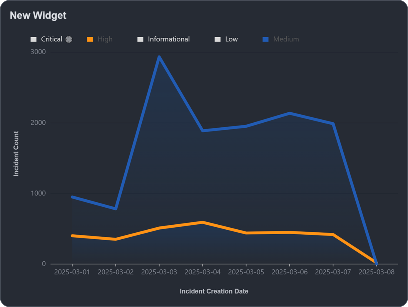 Group By | The category of data that will be plotted on the main axis. For example, a chart that displays incidents over time, a count of incidents will be grouped by their date of occurrence. | ![]() |