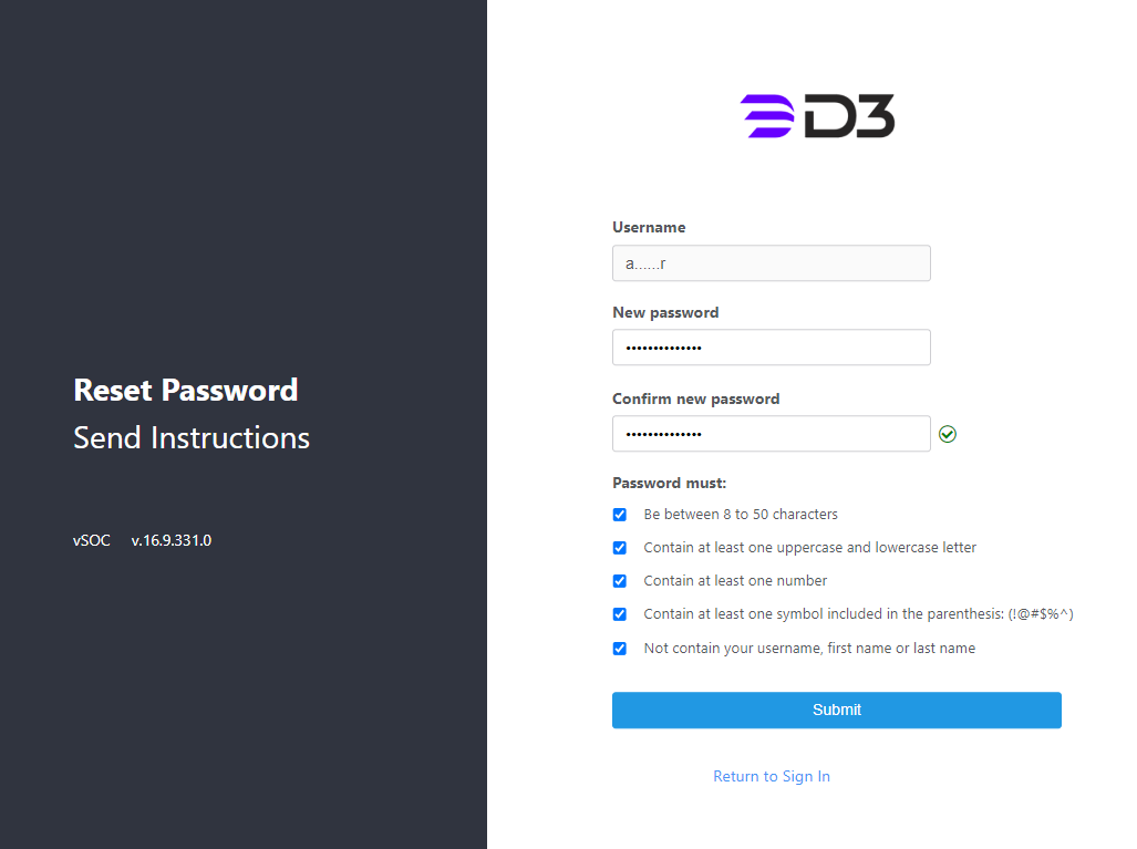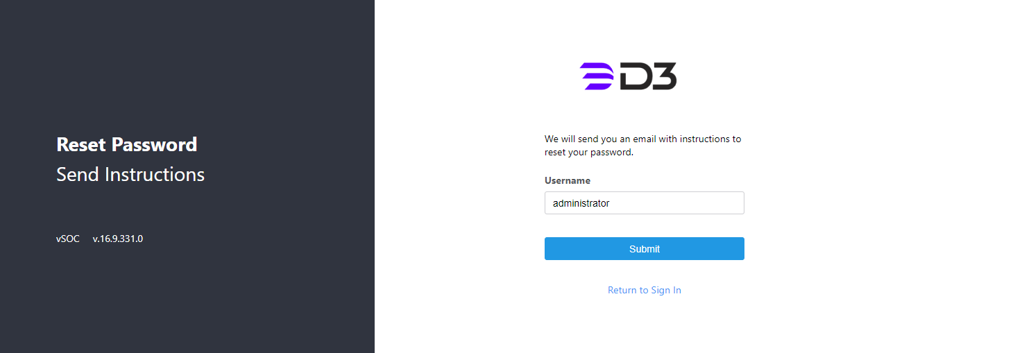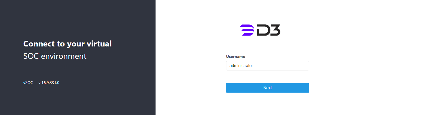 Enter that username on the vSOC login page after receiving notification from D3 that the login authentication method has been changed.