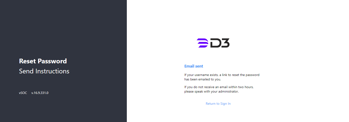 Upon saving the changes, users will be able to login using general authentication. If a user has forgotten their vSOC password, they are required to reset it.