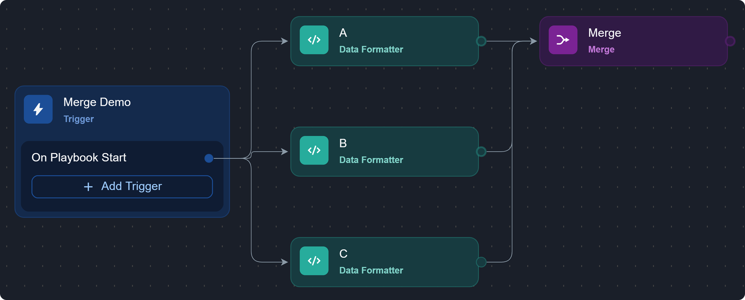 Example 2 - Merge Results for Playbooks with Common Ancestor Nodes and Sibling Branches